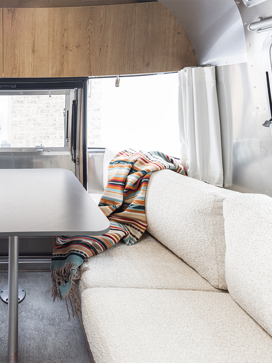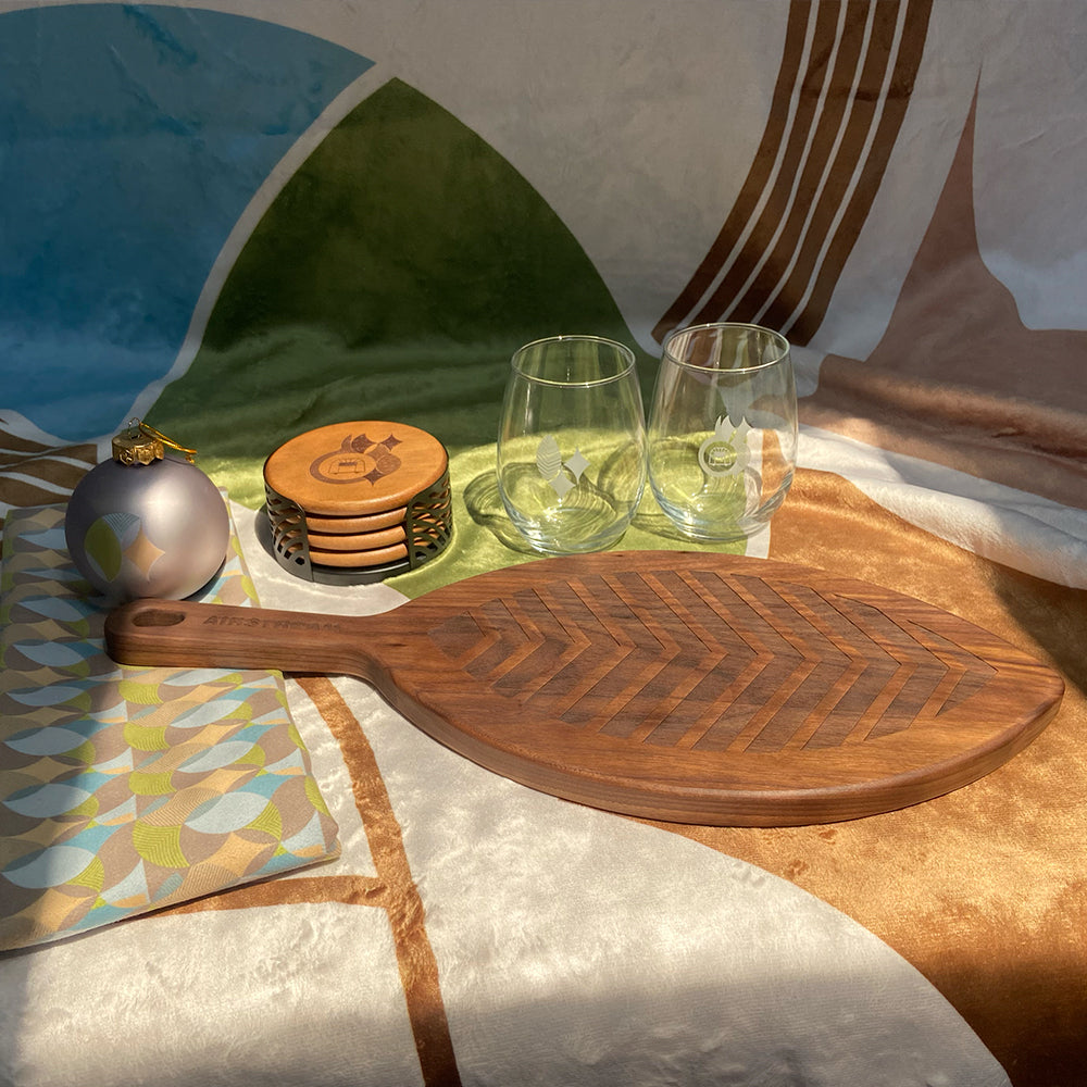 From cozy throw blankets and pillows to elegant wine glasses, coasters, and charcuterie boards, the Airstream x Frank Lloyd Wright Collection offers something for everyone. Whether you're outfitting your home or your Airstream, these thoughtfully designed pieces bring timeless style to any space.