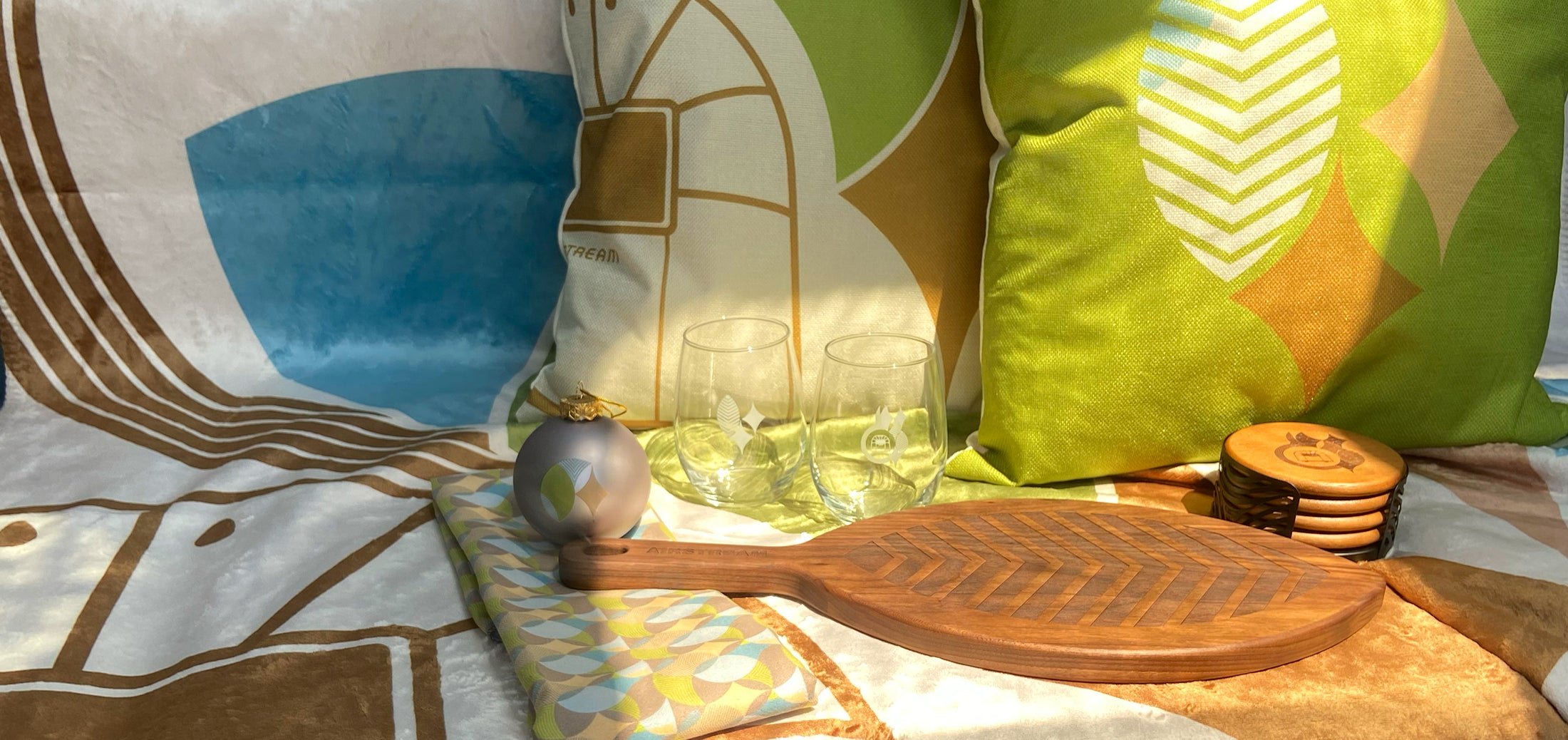 From cozy throw blankets and pillows to elegant wine glasses, coasters, and charcuterie boards, the Airstream x Frank Lloyd Wright Collection offers something for everyone. Whether you're outfitting your home or your Airstream, these thoughtfully designed pieces bring timeless style to any space.