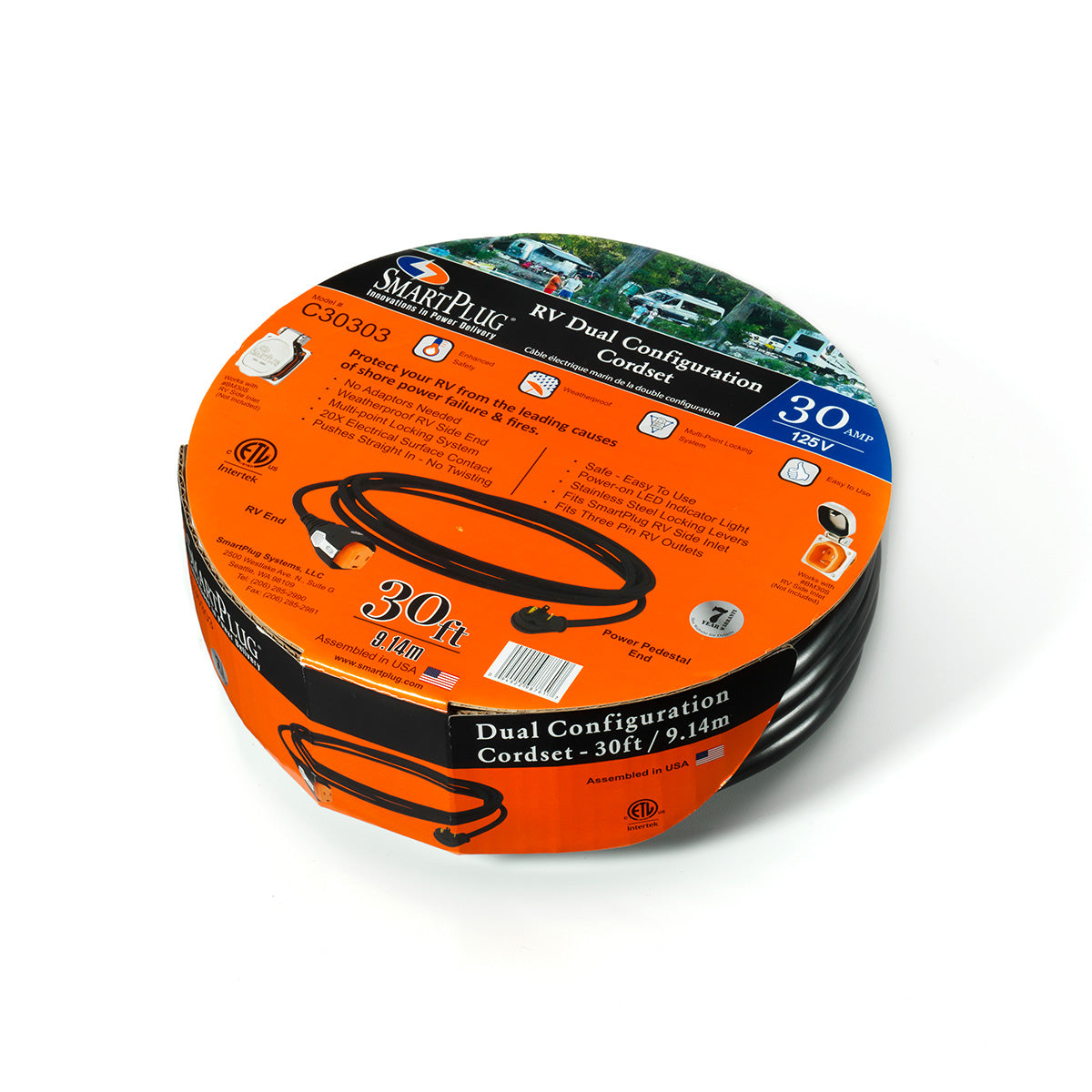 The SmartPlug 30 Amp Dual Configuration Cordset works with the 30 Amp RV Inlet (sold separately).
