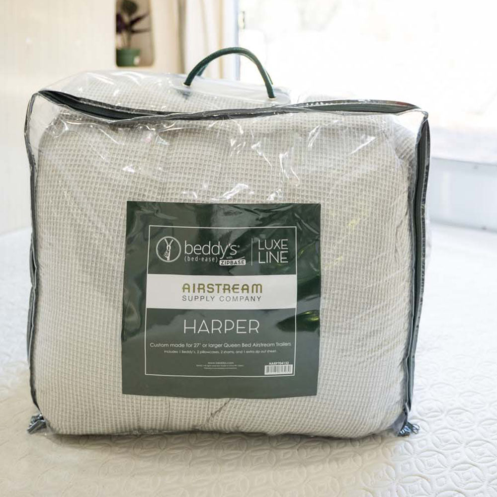 Now, we're excited to offer custom-designed Beddy's sets made specifically for your Airstream Caravel Travel Trailer. Quickly set up your bed with Beddy's elastic features that hold everything snug on your mattress, and easily zip up your Beddy's set and make your bed in a flash.