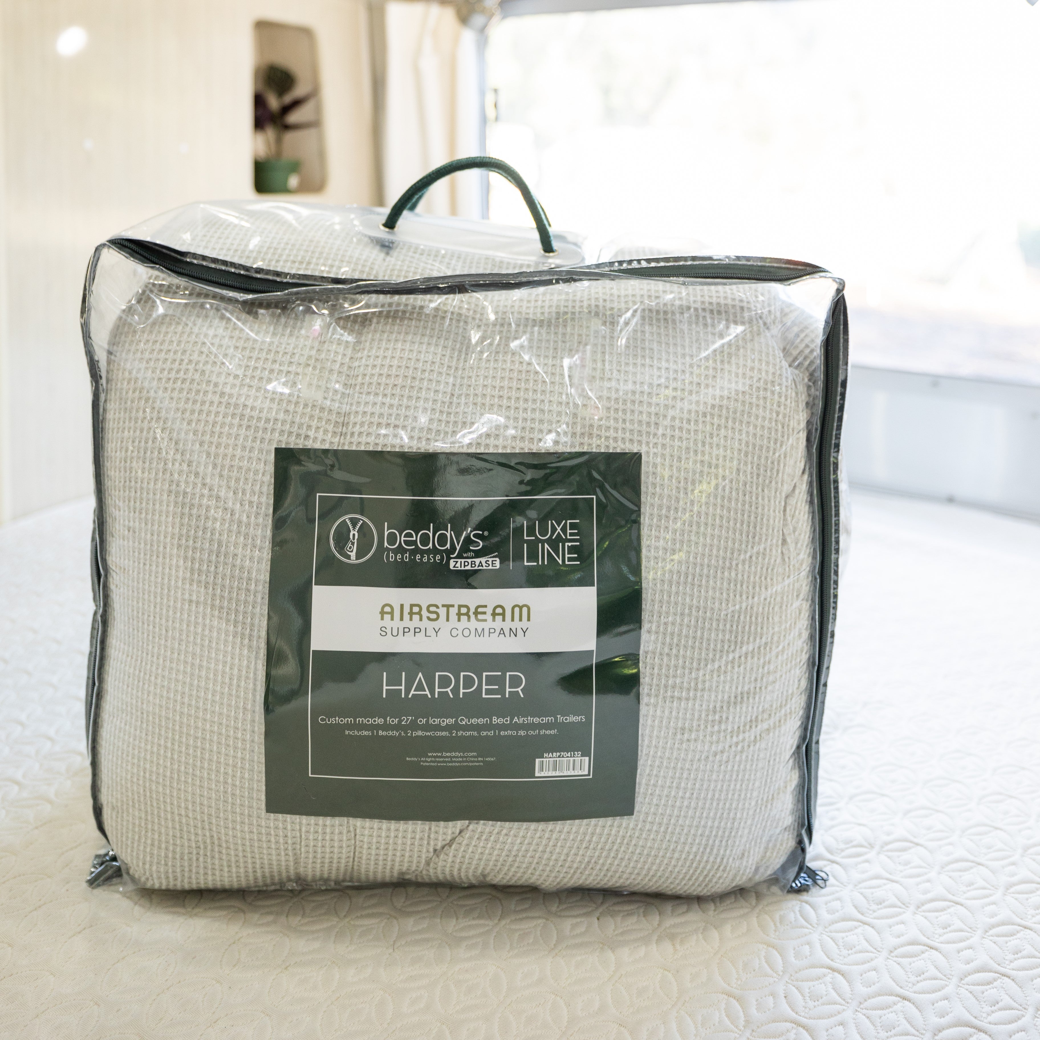 Now, we're excited to offer custom-designed Beddy's sets made specifically for your Airstream International Travel Trailer. Quickly set up your bed with Beddy's elastic features that hold everything snug on your mattress, and easily zip up your Beddy's set and make your bed in a flash.