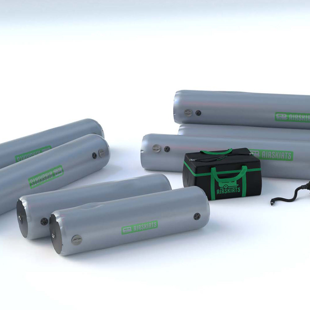 Traditionally, RVers use a snap-on, custom-made vinyl drape skirt that requires drilling holes into the RV or a DIY solution, often involving Styrofoam boards and tape, hay bales, or other unattractive solutions. The inflatable design behind AirSkirts solves the shortcomings of current skirting solutions by inflating under your Airstream and staying in place with air pressure.