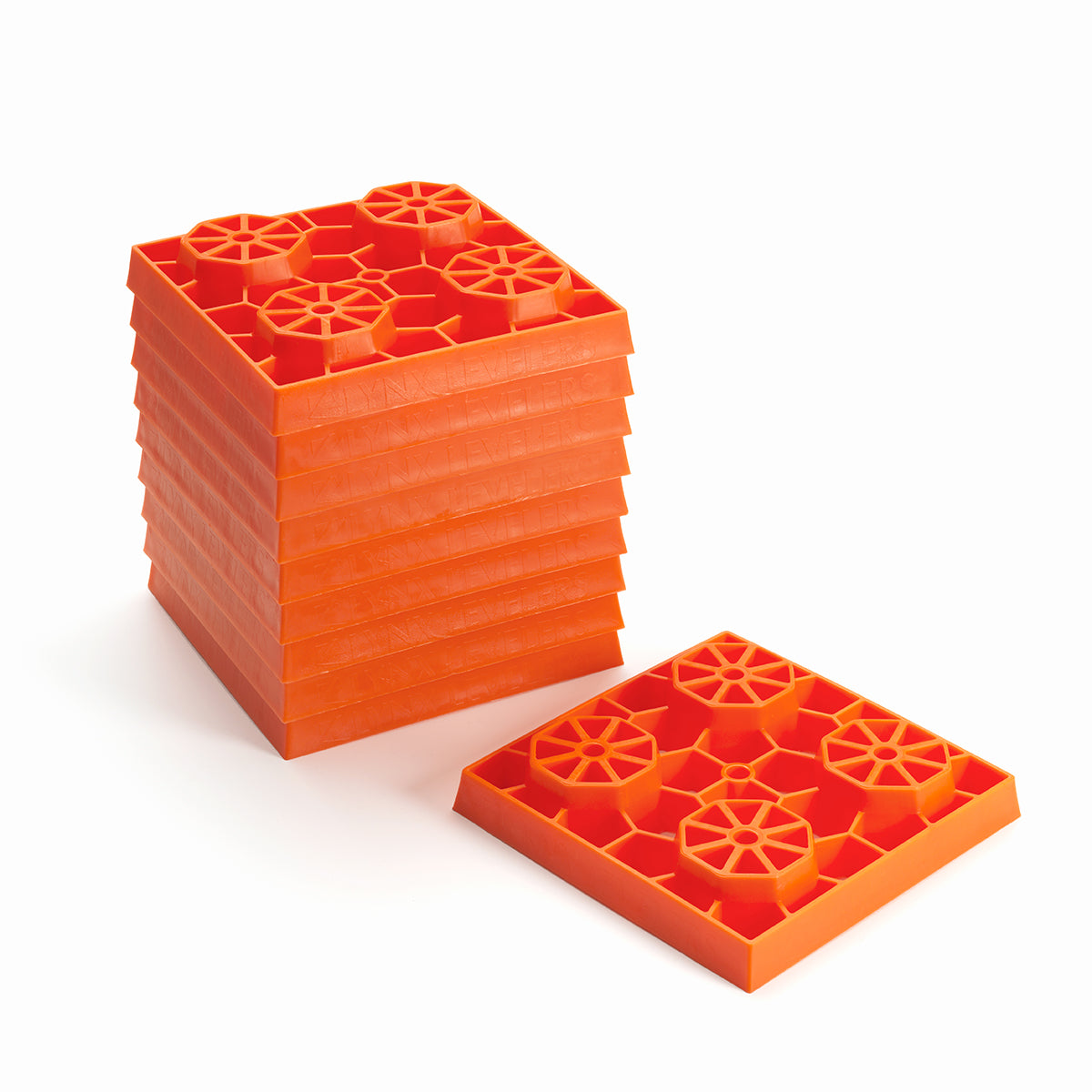 Strong and durable, Lynx Levelers are the perfect solution for setting up camp in a less than level situations. Featuring 10 interlocking leveling blocks that can be stacked in a variety of ways, Lynx Levelers are a versatile piece of every Airstreamer's RV tool kit. Made in the USA and easy to use, Lynx Levelers come in a pack of 10. Comes with nylon storage bag.