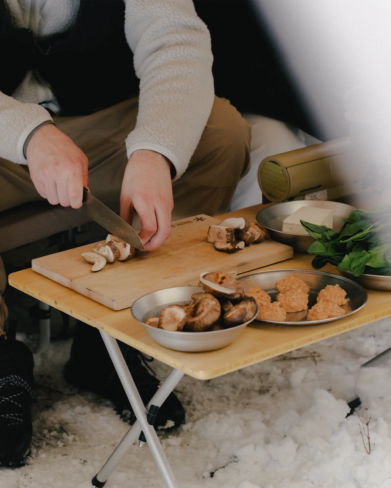 Snow Peak's Large Family Tableware Set is made of 0.4mm thick stainless steel to produce lightweight, rust-resistant, and durable dishes. The set includes four dish sets, for a total of 16 pieces that stack for storage in a mesh bag – perfect for stowing in the overhead roof lockers in your Airstream galley.