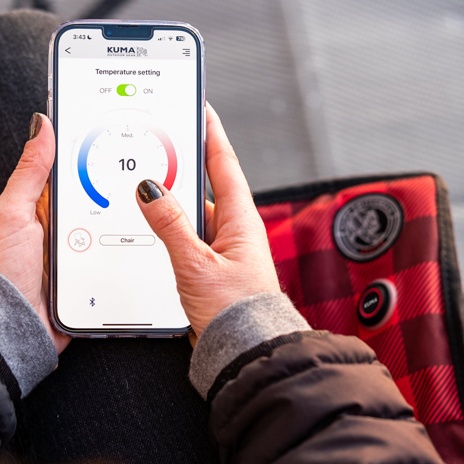 Kuma Outdoor Gear is proud to introduce the first ever padded DuoHeat System controlled by Bluetooth™ technology. Grab your phone, open the Kuma Heated App and crank up the heat! As the warmth sets in on both the seat and the lower back, you’ll be able to micro adjust your heat settings from 1-10 and view it on Kuma's LED Lit Bluetooth™/manual button. Comes complete with a beverage holder, phone pocket, 10,000 mAh rechargeable lithium battery and carry bag. Rated for 265lbs.