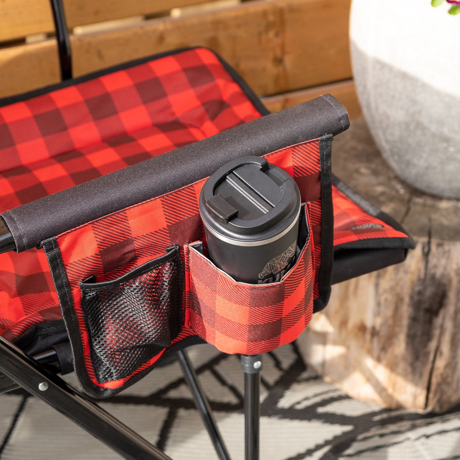 Designed with a balance of comfort and craftsmanship, you’ll find this umbrella-style folding chair to be a versatile chair for campsite use. Adjustable legs let you set up the Switchback Chair on uneven ground for perfect comfort no matter where you're setting up camp. Kuma's Switchback Chair comes complete with an insulated beverage holder and phone mesh pocket on the side. At only 12 lbs., it's easy to transport wherever your adventures takes you.
