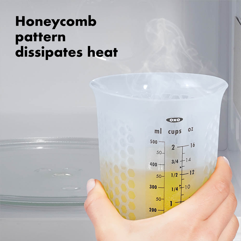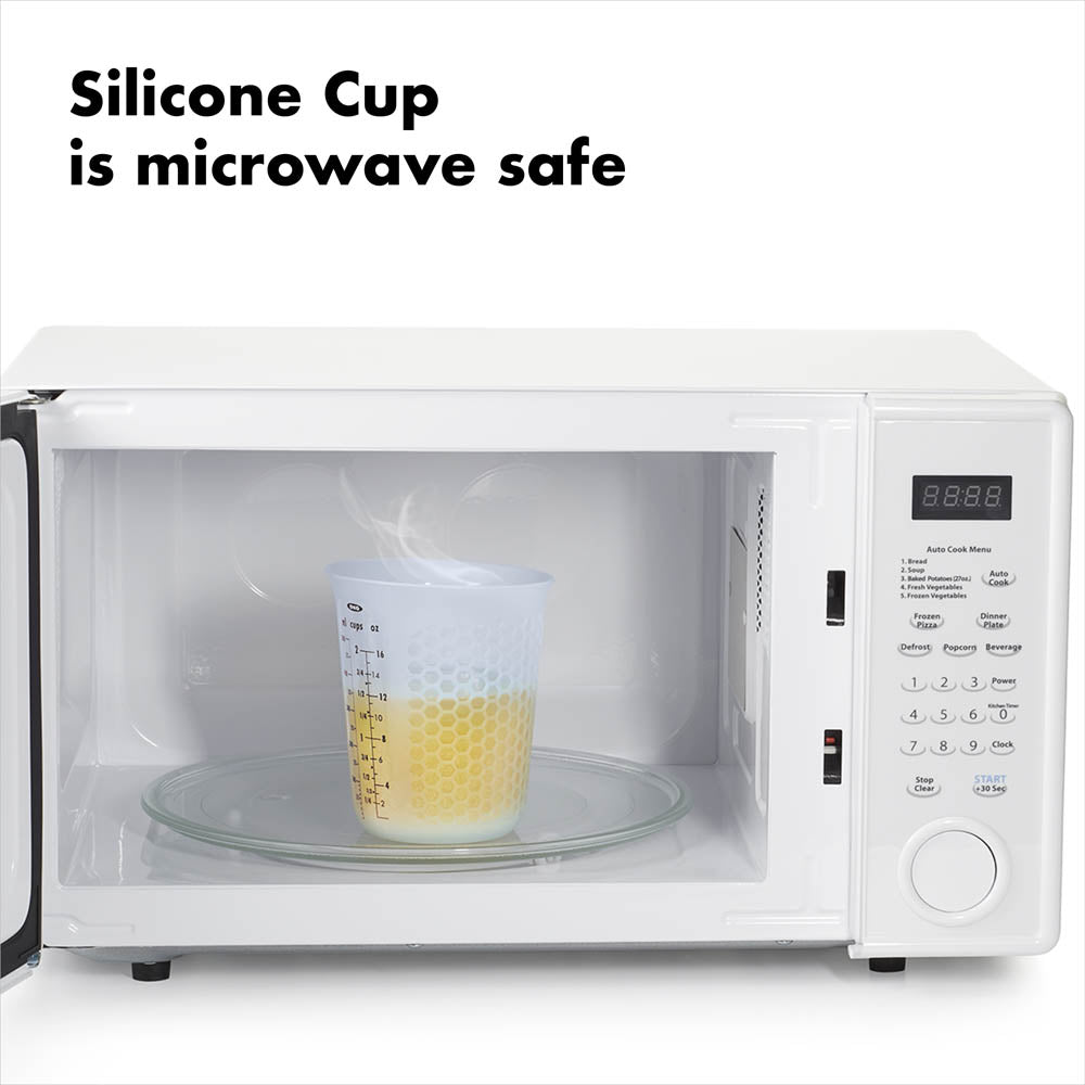 Flexible, microwave-safe, and perfect for the Airstream, OXO's Squeeze & Pour Silicone Measuring Cup makes it easy to mix, measure, microwave, and pour all from the same measuring cup. OXO's specialized honeycomb pattern protects your fingers, and a simple squeeze forms a precise pour.
