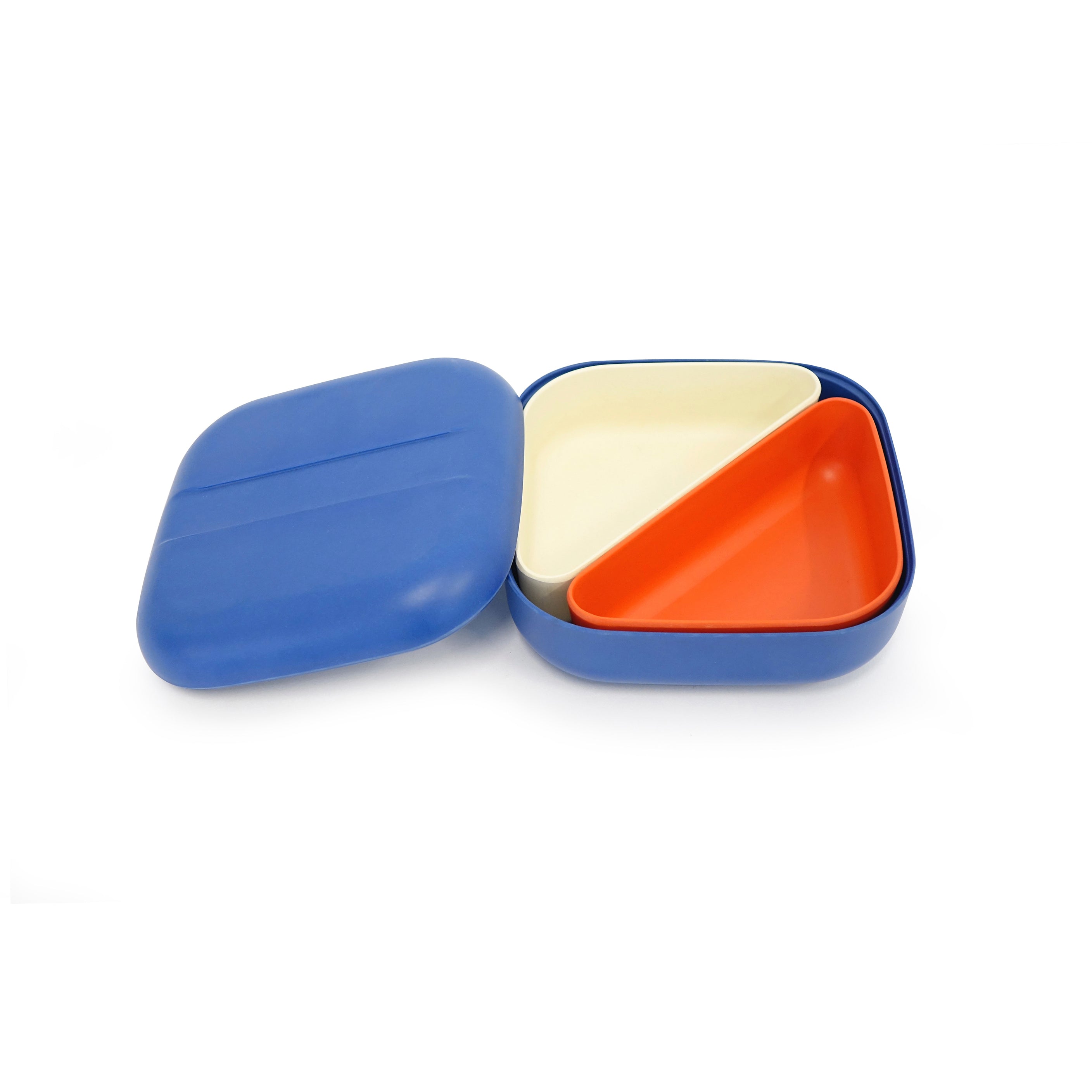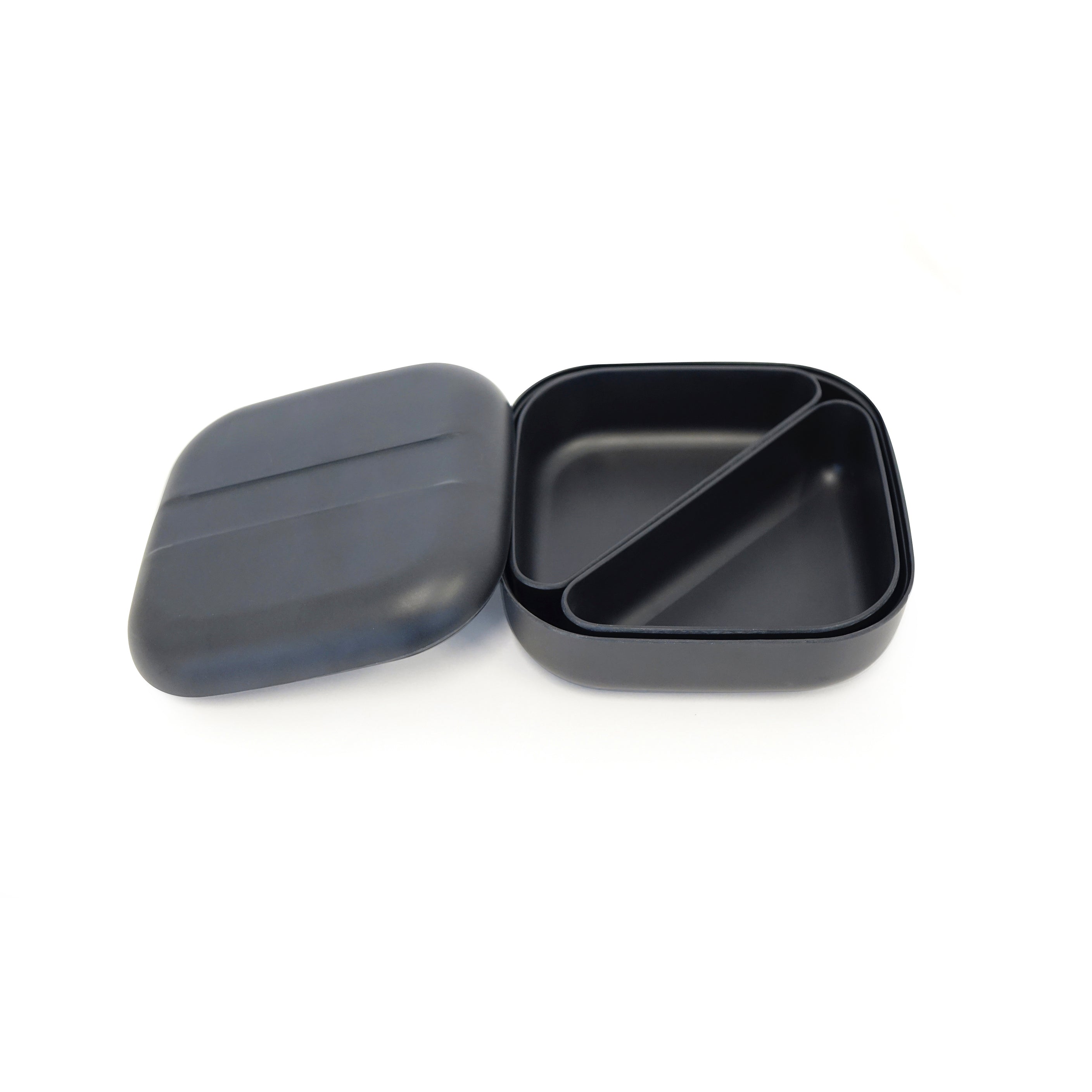 - SQUARE: Designed for snacks or meals to go, inside are 2 removable containers to separate snacks or sides. Remove 1 or both for a full or half sandwich; its top doubles as a plate and it’s held firmly closed by a black silicone band.