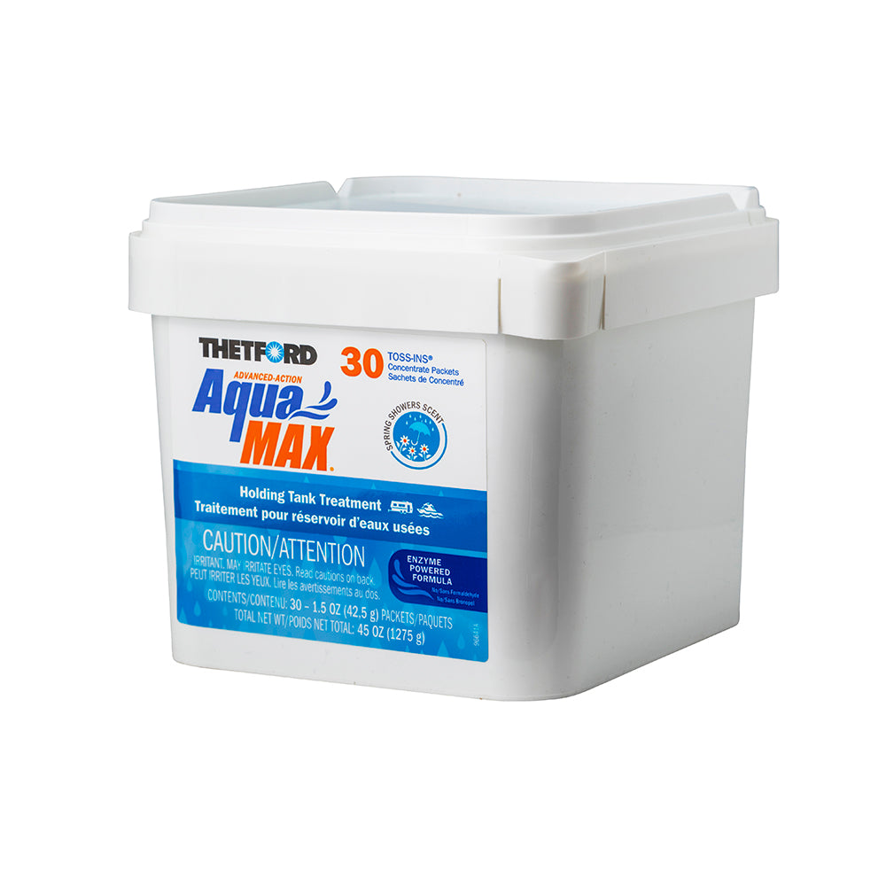 AquaMax ® Holding Tank Treatment’s advanced enzyme powered formulas neutralize odors and accelerate waste digestion to prevent clumping, clogging and tank residue, all at the same time. Thetford’s beneficial probiotic treatments are Bronopol Free and Formaldehyde Free to provide campground friendly.