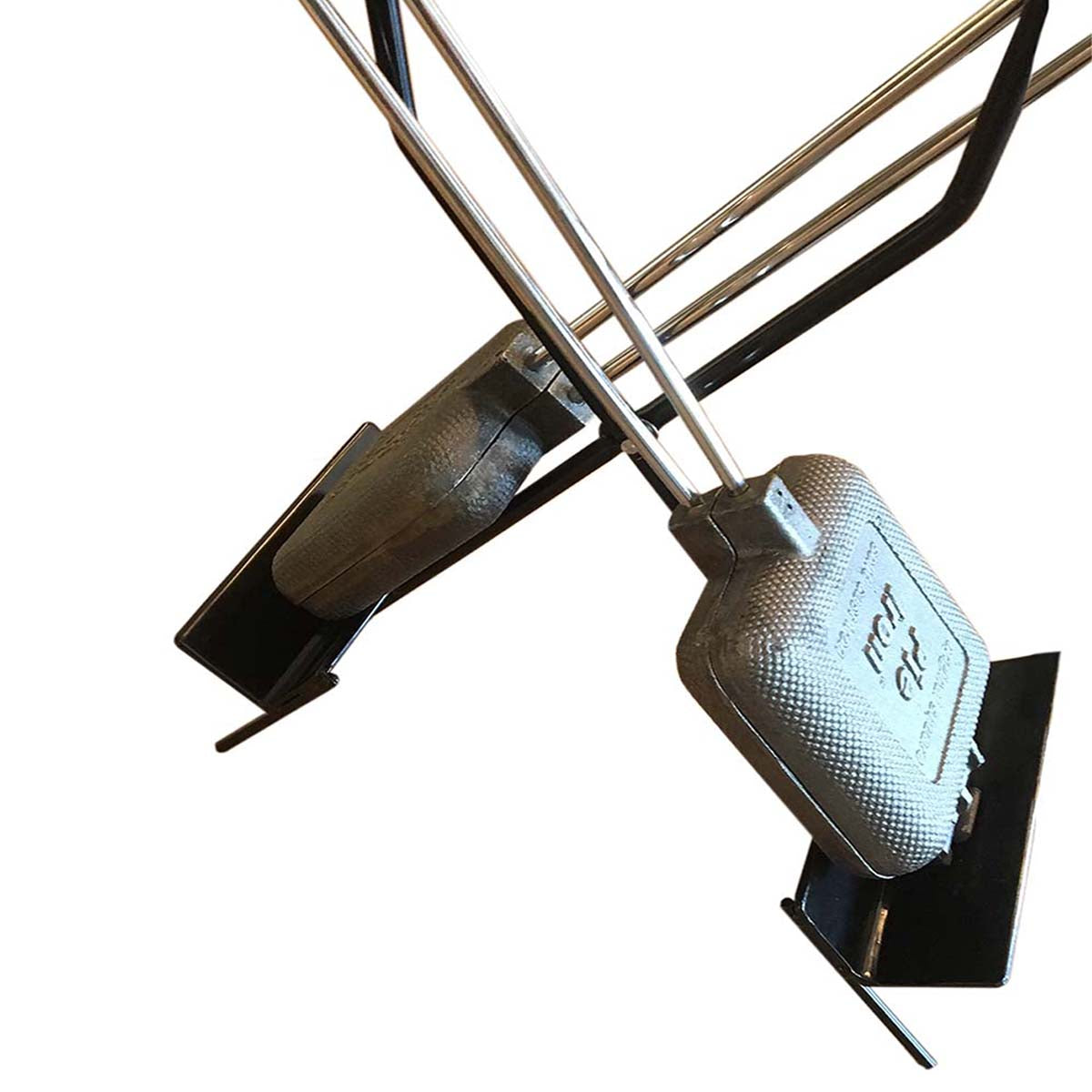 That's where the Pie Iron Kick Stand comes in. This simple and smart stand folds flat for easy transport and opens up to securely hold two pie irons at a time. Simply pop it open, push the legs into the ground, and then prop your hot pie irons up to cool. Wrought iron construction with high temperature powder coat.