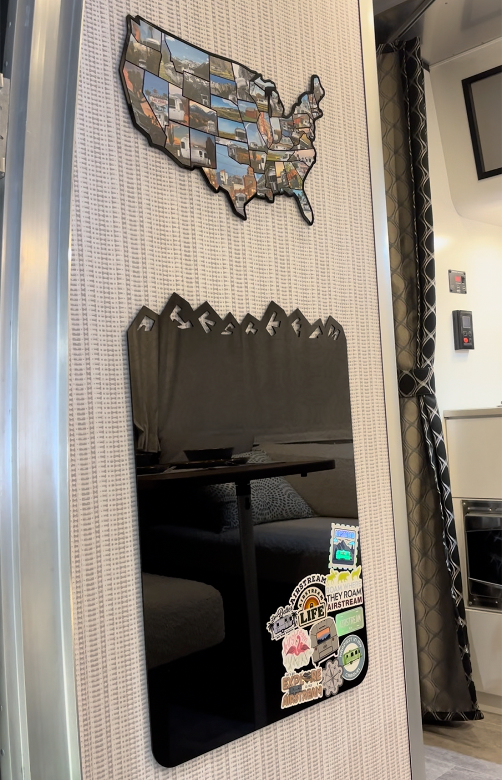 Take your Airstream journey to the next level by pairing the Original Adventure Board with the U.S. States Adventure Map. This dynamic duo lets you track your travels and display your sticker collection with ease—no mess, no damage to your Airstream surfaces. While the Adventure Board showcases your favorite stickers, the Adventure Map allows you to mark each state you visit, turning your Airstream into a personal travel journal.